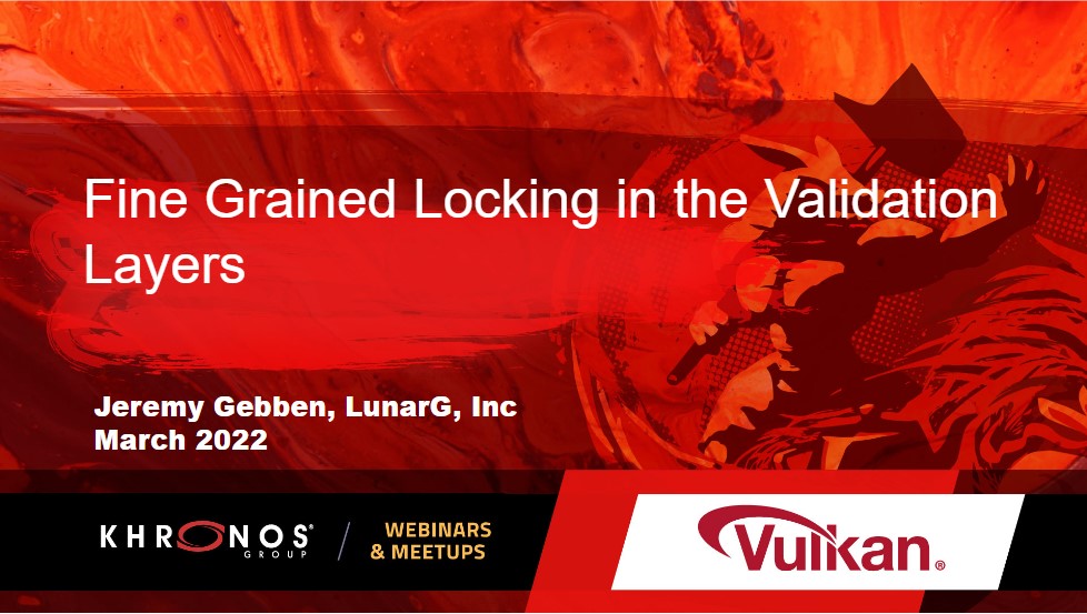 LunarG presented Fine-Grained Locking in the Validation Layers at Vulkanise in March of 2022. Click here to view the presentation.